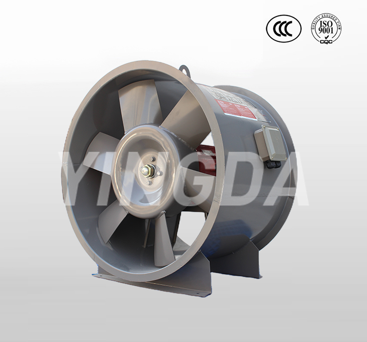 1.1.HTF型軸流式消防排煙風機,其基本形式為軸流式結構,電機采用耐高溫電機,產品按GA211-2009《消防排煙風機耐高溫試驗方法》進行耐高溫試驗,通過公安部消防產品合格評定中心3C強制性認證,可在介質溫度280℃高溫條件下連續運轉60分鐘以上,100℃溫度條件下連續20小時/次不損壞,可通風、排煙兩用。