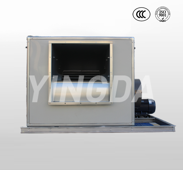 1.1.HTFC型柜式離心風(fēng)機(jī)是一種高效率、低噪聲箱式離心風(fēng)機(jī)。產(chǎn)品由低噪聲前傾多翼離心風(fēng)機(jī)、電機(jī)、軸承、傳動(dòng)件、消聲型箱體等組成。根據(jù)安裝位置的不同,提供12種不同的角度的進(jìn)出風(fēng)口位置,以滿足用戶不同的安裝需要。根據(jù)消防與通風(fēng)的不同要求分A式和B式兩種類型,A式電機(jī)裝在箱體外,用于消防排煙,并經(jīng)國家消防裝備監(jiān)督質(zhì)量檢驗(yàn)中心按GA211-2009《消防排煙風(fēng)機(jī)耐高溫試驗(yàn)方法》進(jìn)行耐高溫試驗(yàn),能在280℃高溫條件下連續(xù)運(yùn)行30分鐘以上;B式電機(jī)裝在箱體內(nèi),用于通風(fēng)換氣。